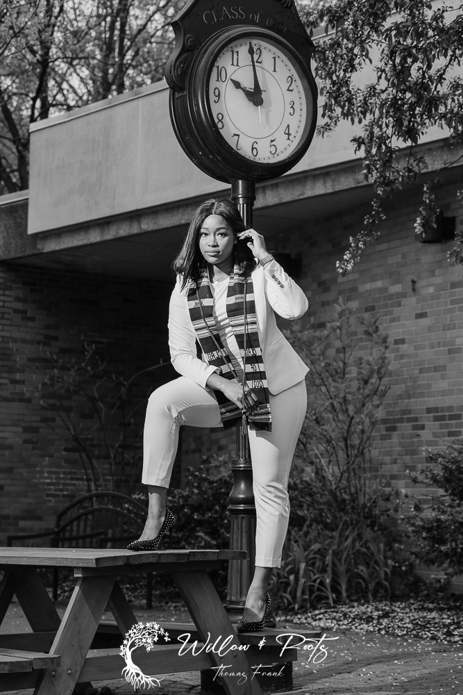 We spent the majority of our time in the center of campus very close to the GANNON arch over 7th street. Because she’s an avid reader, Chidera brought one of her engineering books with her as a prop to use during her Gannon graduation portraits. We got a lot of fun photos near the large clock on the center of campus as well as with the arch. At the end of the session one of Chidera’s friends walked by and she stopped to take a few photos with him as well.